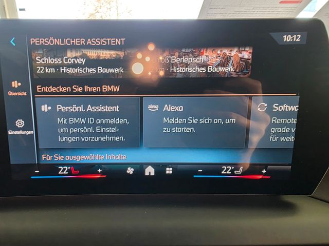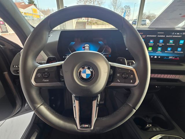 Adaptives Fahrwerk M-Technic, Airbag Beifahrerseite abschaltbar, Airbag Fahrer-/Beifahrerseite, Aktive Motorhaube, Außenausstattung: Shadow-Line Hochglanz, Außenspiegel mit Projektionsfunktion, BMW Live Cockpit Plus, Bremsassistent, Dachhimmel Anthrazit, Dynamische Bremsleuchte, Dynamische Tractions Control (DTC), Erste Hilfe-Kasten / Verbandkasten, Fahrassistenz-System: Active Guard (Bremsassistent), Fahrassistenz-System: Anfahr-Assistent, Fahrassistenz-System: Aufmerksamkeits-Assistent, Fahrassistenz-System: Driving Assistant, Fahrassistenz-System: Performance Control, Fahrassistenz-System: Post-Crash-System (PC-iBrake), Gepäckraumbeleuchtung, Getriebe 7-Gang - Doppelkupplungsgetriebe mit Steptronic und Schaltwippen, Innenausstattung: Interieurleisten Illuminated Aluminium Hexacube, matt), Isofix-Aufnahmen für Kindersitz an Beifahrersitz, Isofix-Aufnahmen für Kindersitz an Rücksitz, Karosserie: 5-türig, Klimaautomatik, Kopf-Airbag-System hinten, Kopf-Airbag-System vorn, Lichtassistent (Follow me home), M Sport, Motor 2,0 Ltr. - 110 kW 16V Turbodiesel KAT (B47), Multimedia-Schnittstelle 2 x USB (Typ C) Mittelkonsole vorn, Parkassistent-Paket, Parkbremse elektrisch, Personalisierungssystem (BMW My Modes), Personalisierungssystem (Personal eSIM), Radioempfang digital (DAB+), Reifendruck-Kontrollsystem, Rücksitzlehne geteilt/klappbar (60:40), Schadstoffarm nach Abgasnorm Euro 6e, Scheibenwaschdüsen heizbar, Scheinwerfer LED, Seitenairbag vorn, Service-System: Gesetzlicher Notruf, Service-System: Intelligenter Notruf inkl. TeleServices, Sitzbezug / Polsterung: M Alcantara / Veganza Kombination (Schwarz mit blau Kontraststeppung), Sportsitze vorn, Steckdose (12V-Anschluß) in Mittelkonsole vorn, Warndreieck